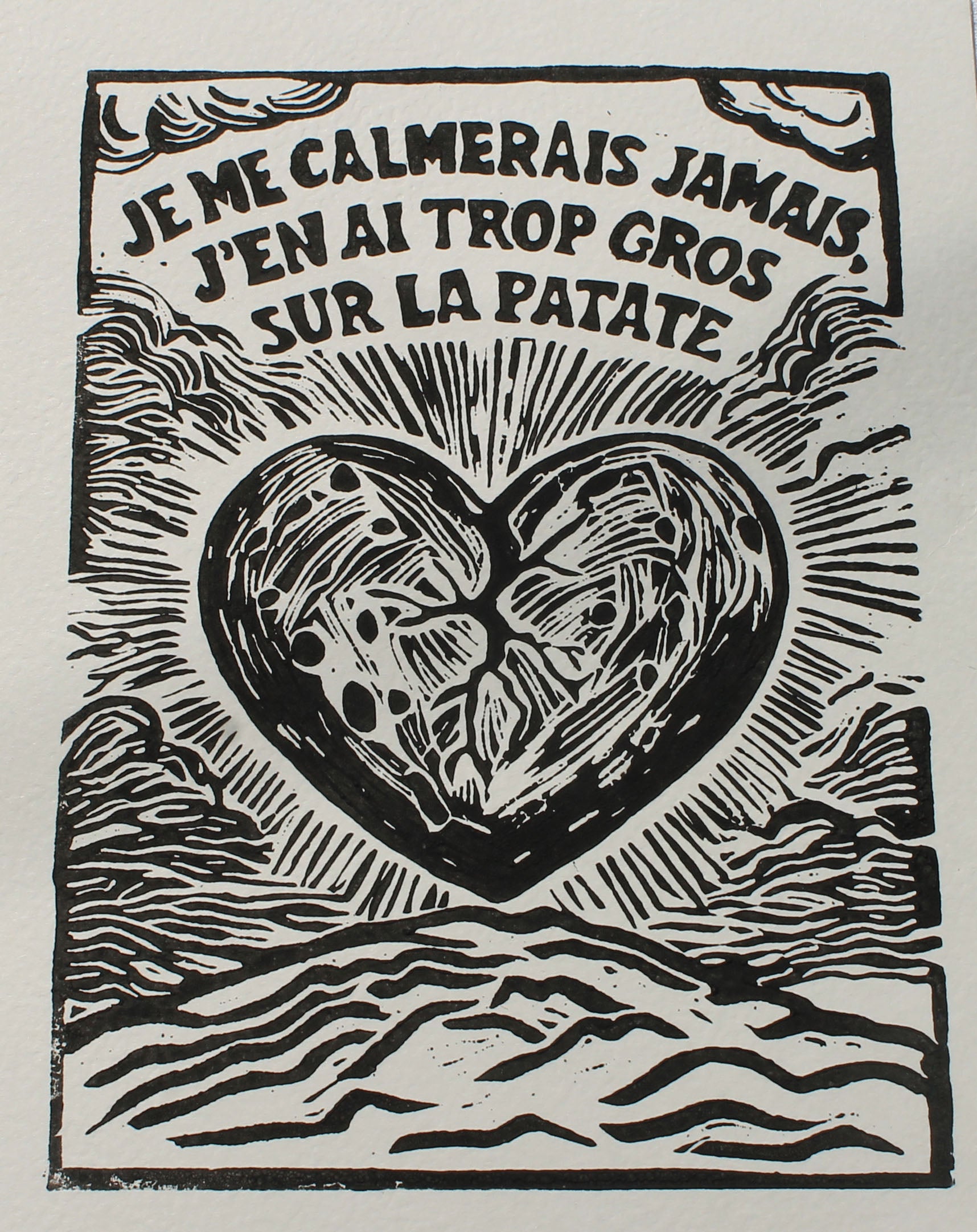 Un cœur rebelle, une patate en colère : une gravure pour celles et ceux qui ne se calmeront jamais.